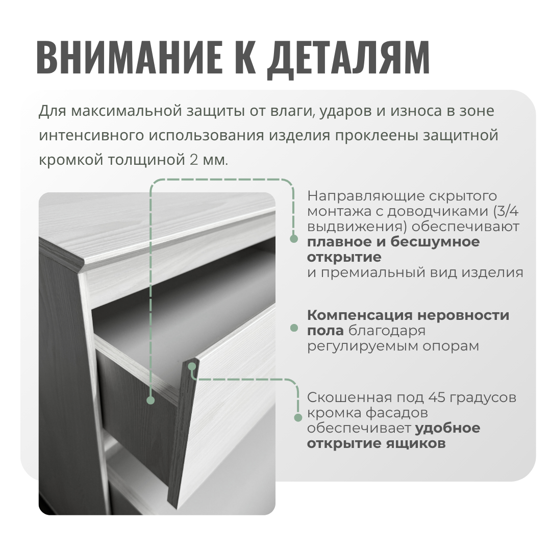 - Эстетичный вид (нет видимых отверстий или заглушек даже при открытой шуфлядке)