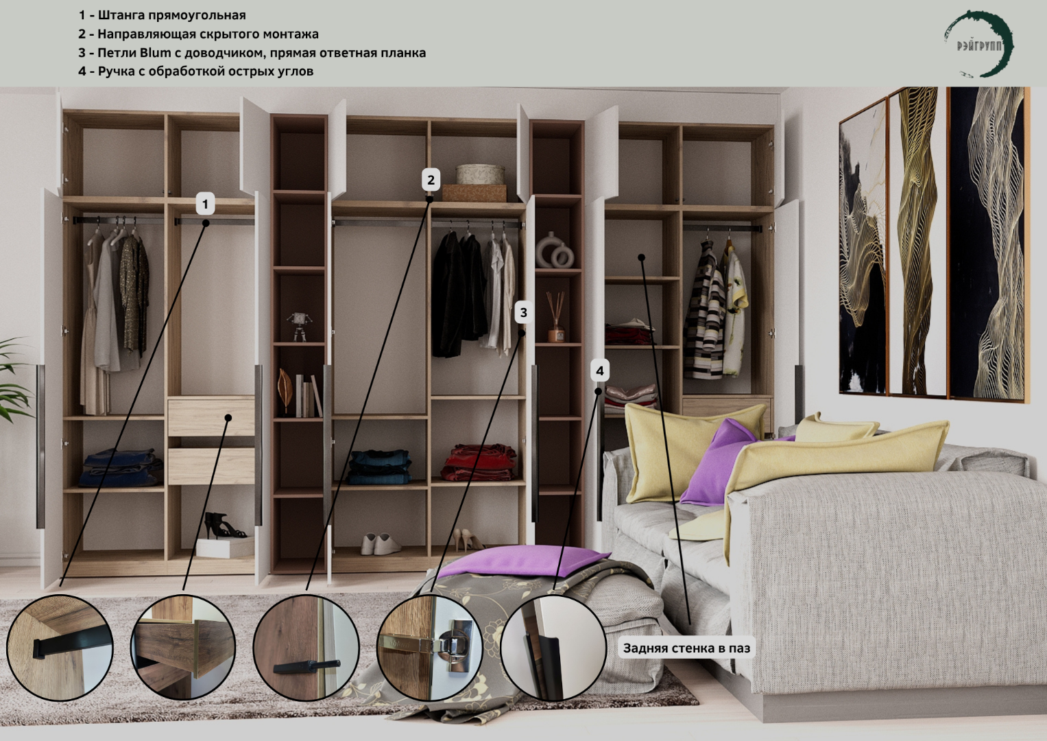Коллекция шкафов «Рэй» это альтернатива "встроенному шкафу на заказ" фабричного исполнения под Ваши размеры с возможностью наличия у нас на складе без каких либо сроков ожидания по месяцу и более!